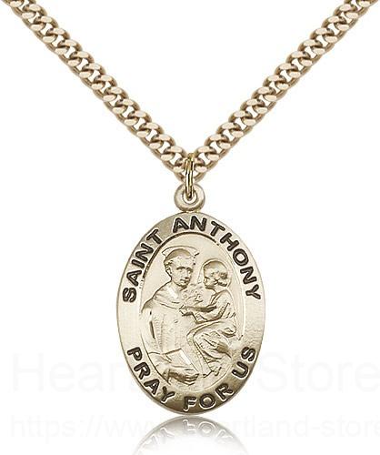 This St. Anthony of Padua Medal is paired with a 24 inch stainless steel gold-tone heavy curb chain as pictured. All medals are gift boxed in a light blue velvet jewelry box ready for gift giving.
