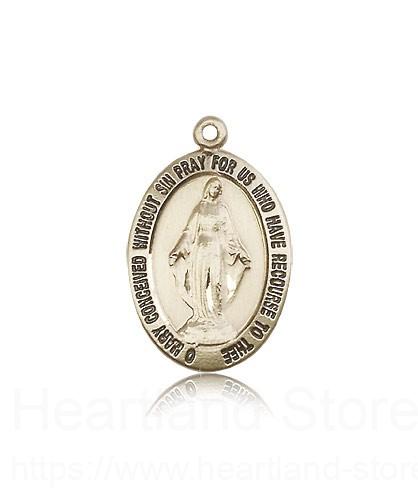 This Miraculous Medal is made of 14 Karat Gold. The jewelry pendant is sold as pictured and does not come with a chain. All medals are gift boxed in a light blue velvet jewelry box ready for gift giving.