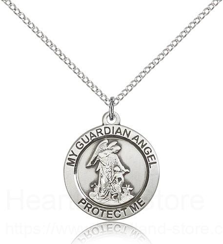 This Guardian Angel Medal is paired with an 18 inch sterling silver lite curb chain as pictured. All medals are gift boxed in a light blue velvet jewelry box ready for gift giving.