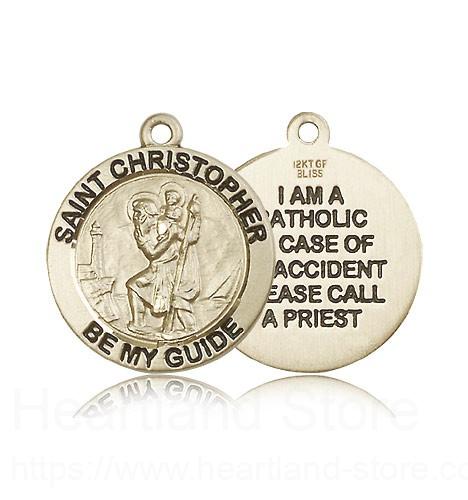 This St. Christopher Medal is made of 14 Karat Gold. The jewelry pendant is sold as pictured and does not come with a chain. All medals are gift boxed in a light blue velvet jewelry box ready for gift giving.