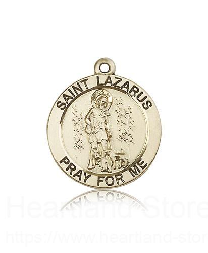 This St. Lazarus Medal is made of 14 Karat Gold. The jewelry pendant is sold as pictured and does not come with a chain. All medals are gift boxed in a light blue velvet jewelry box ready for gift giving.