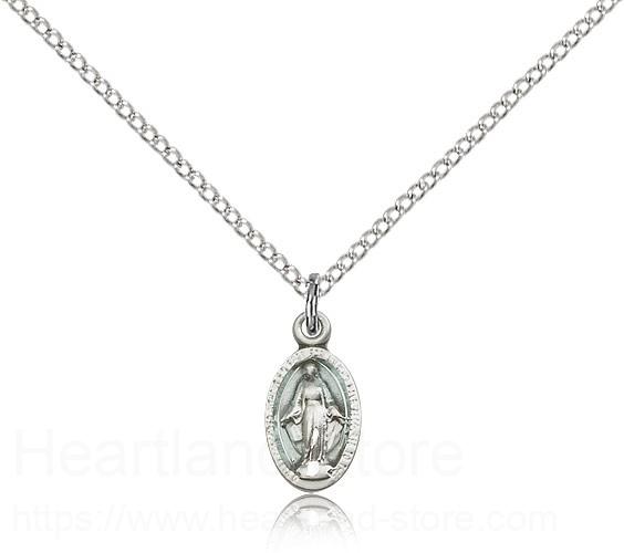 This Miraculous Medal is paired with an 18 inch sterling silver lite curb chain as pictured. All medals are gift boxed in a light blue velvet jewelry box ready for gift giving.