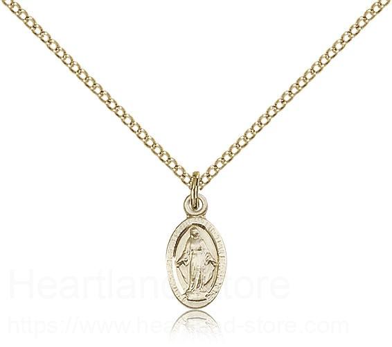 This Miraculous Medal is paired with an 18" gold filled light curb chain as pictured. All medals are gift boxed in a light blue velvet gift box ready for gift giving.