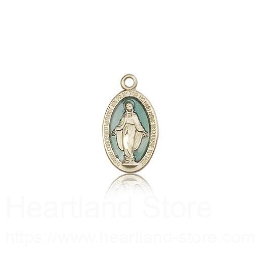 This Miraculous Medal is made of 14 Karat Gold. The jewelry pendant is sold as pictured and does not come with a chain. All medals are gift boxed in a light blue velvet jewelry box ready for gift giving.