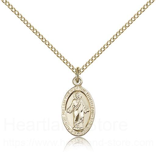 This Scapular Medal is paired with an 18" gold filled light curb chain as pictured. All medals are gift boxed in a light blue velvet gift box ready for gift giving.