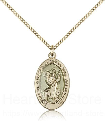 This St. Christopher Medal is paired with an 18" gold filled light curb chain as pictured. All medals are gift boxed in a light blue velvet gift box ready for gift giving.