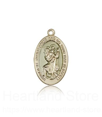This St. Christopher Medal is made of 14 Karat Gold. The jewelry pendant is sold as pictured and does not come with a chain. All medals are gift boxed in a light blue velvet jewelry box ready for gift giving.