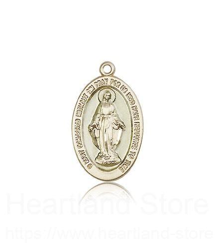 This Miraculous Medal is made of 14 Karat Gold. The jewelry pendant is sold as pictured and does not come with a chain. All medals are gift boxed in a light blue velvet jewelry box ready for gift giving.