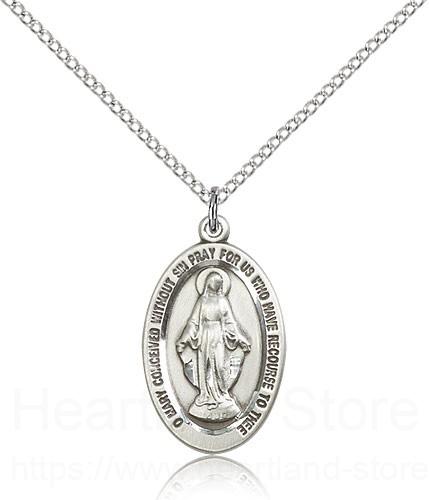 This Miraculous Medal is paired with an 18 inch sterling silver lite curb chain as pictured. All medals are gift boxed in a light blue velvet jewelry box ready for gift giving.