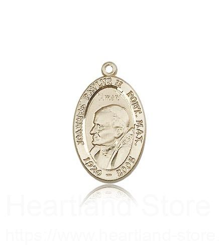 This Pope John Paul II Medal is made of 14 Karat Gold. The jewelry pendant is sold as pictured and does not come with a chain. All medals are gift boxed in a light blue velvet jewelry box ready for gift giving.