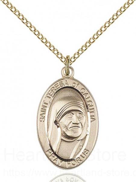 This St. Teresa of Calcutta Medal is paired with an 18" gold filled light curb chain as pictured. All medals are gift boxed in a light blue velvet gift box ready for gift giving.