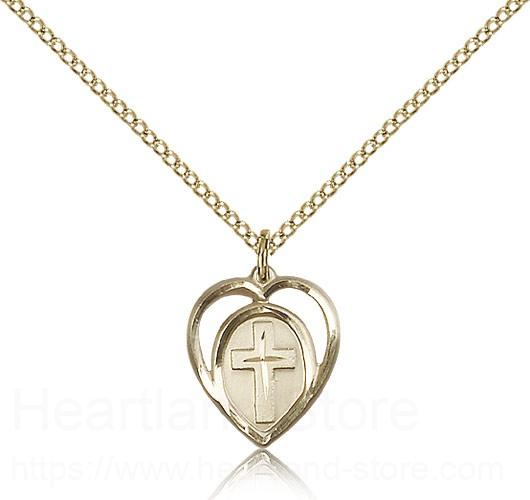This Heart Cross Pendant is paired with an 18" gold filled light curb chain as pictured. All medals are gift boxed in a light blue velvet gift box ready for gift giving.
