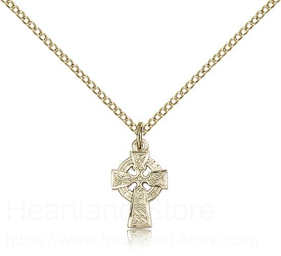 This Celtic Cross Pendant is paired with an 18" gold filled light curb chain as pictured. All medals are gift boxed in a light blue velvet gift box ready for gift giving.