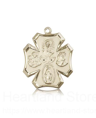 This 4 Way Cross Pendant is made of 14 Karat Gold. The jewelry pendant is sold as pictured and does not come with a chain. All medals are gift boxed in a light blue velvet jewelry box ready for gift giving.