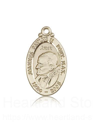 This Pope John Paul II Medal is made of 14 Karat Gold. The jewelry pendant is sold as pictured and does not come with a chain. All medals are gift boxed in a light blue velvet jewelry box ready for gift giving.