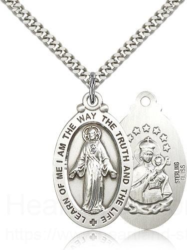 This Scapular Medal is paired with a 24 inch stainless steel heavy curb chain as pictured. All medals are gift boxed in a light blue velvet jewelry box ready for gift giving.