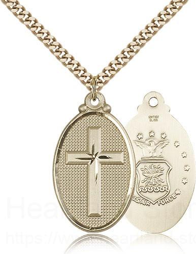 This Cross Army Medal is paired with a 24 inch stainless steel gold-tone heavy curb chain as pictured. All medals are gift boxed in a light blue velvet jewelry box ready for gift giving.