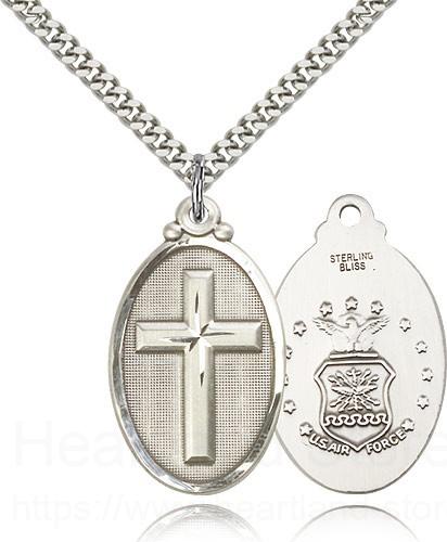 This Cross Air Force Medal is paired with a 24 inch stainless steel heavy curb chain as pictured. All medals are gift boxed in a light blue velvet jewelry box ready for gift giving.
