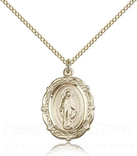 This Miraculous Medal is paired with an 18" gold filled light curb chain as pictured. All medals are gift boxed in a light blue velvet gift box ready for gift giving.
