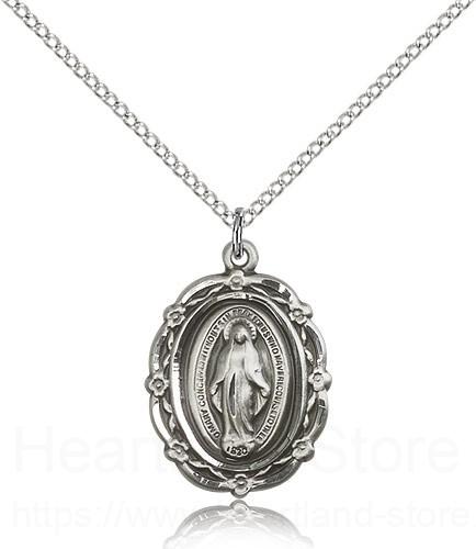 This Miraculous Medal is paired with an 18 inch sterling silver lite curb chain as pictured. All medals are gift boxed in a light blue velvet jewelry box ready for gift giving.
