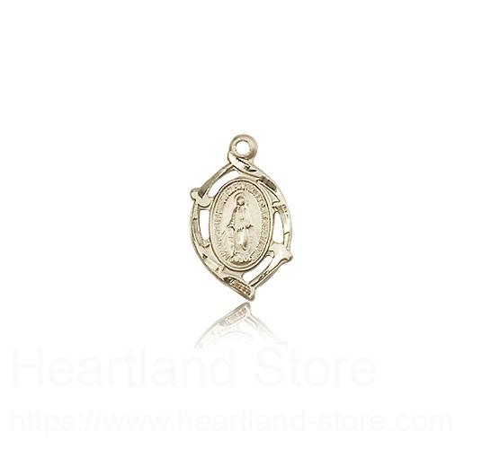 This Miraculous Medal is made of 14 Karat Gold. The jewelry pendant is sold as pictured and does not come with a chain. All medals are gift boxed in a light blue velvet jewelry box ready for gift giving.