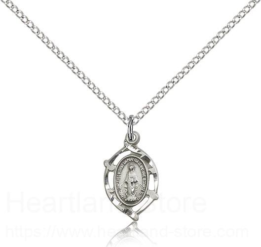 This Miraculous Medal is paired with an 18 inch sterling silver lite curb chain as pictured. All medals are gift boxed in a light blue velvet jewelry box ready for gift giving.
