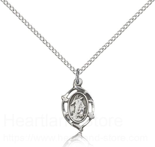 This Guardian Angel Medal is paired with an 18 inch sterling silver lite curb chain as pictured. All medals are gift boxed in a light blue velvet jewelry box ready for gift giving.