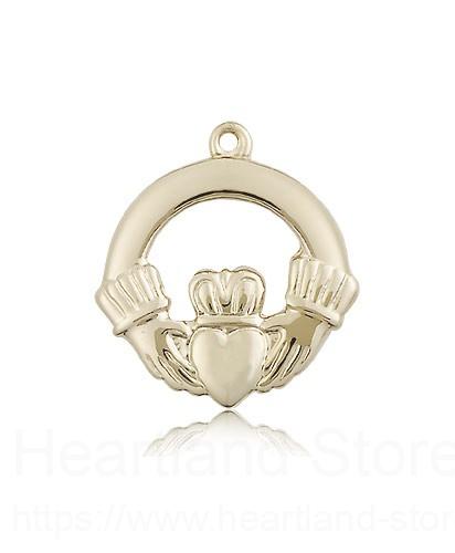 This Claggagh Medal is made of 14 Karat Gold. The jewelry pendant is sold as pictured and does not come with a chain. All medals are gift boxed in a light blue velvet jewelry box ready for gift giving.