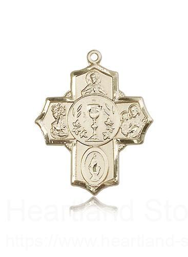This 5 Way Cross Pendant is made of 14 Karat Gold. The jewelry pendant is sold as pictured and does not come with a chain. All medals are gift boxed in a light blue velvet jewelry box ready for gift giving.