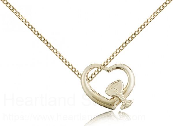 Heart Chalice Medal is paired with an 18" gold filled light curb chain as pictured. All medals are gift boxed in a light blue velvet gift box ready for gift giving.