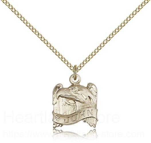 This St. John Medal is paired with an 18" gold filled light curb chain as pictured. All medals are gift boxed in a light blue velvet gift box ready for gift giving.