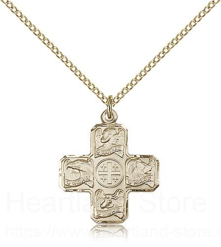 This Evangelist Medal is paired with an 18" gold filled light curb chain as pictured. All medals are gift boxed in a light blue velvet gift box ready for gift giving.