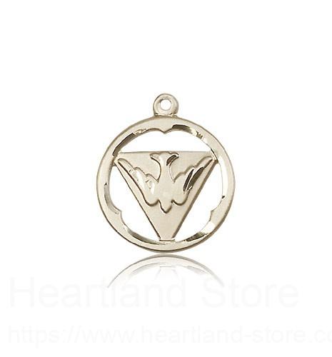 This Holy Spirit Medal is made of 14 Karat Gold. The jewelry pendant is sold as pictured and does not come with a chain. All medals are gift boxed in a light blue velvet jewelry box ready for gift giving.