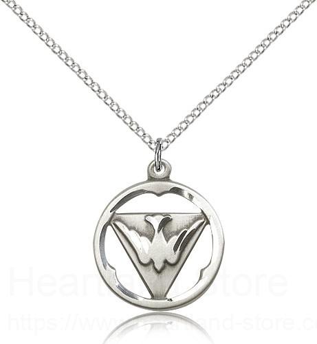 This Holy Spirit Medal is paired with an 18 inch sterling silver lite curb chain as pictured. All medals are gift boxed in a light blue velvet jewelry box ready for gift giving.