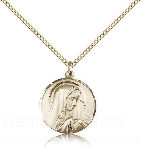 This Sorrowful Mother Medal is paired with an 18" gold filled light curb chain as pictured. All medals are gift boxed in a light blue velvet gift box ready for gift giving.