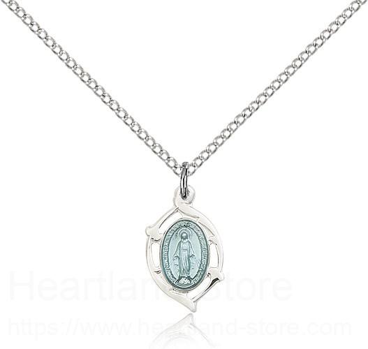 This Miraculous Medal is paired with an 18 inch sterling silver lite curb chain as pictured. All medals are gift boxed in a light blue velvet jewelry box ready for gift giving.