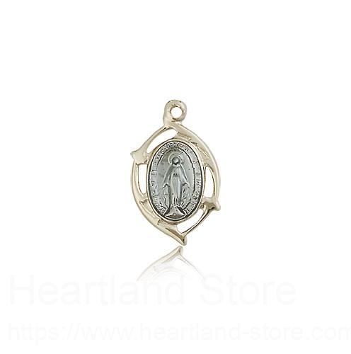 This Miraculous Medal is made of 14 Karat Gold. The jewelry pendant is sold as pictured and does not come with a chain. All medals are gift boxed in a light blue velvet jewelry box ready for gift giving.