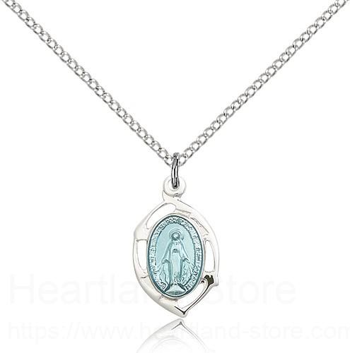 This Miraculous Medal is paired with an 18 inch sterling silver lite curb chain as pictured. All medals are gift boxed in a light blue velvet jewelry box ready for gift giving.