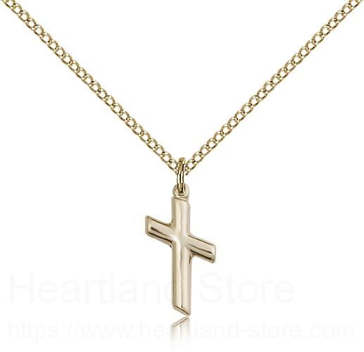 This Cross Pendant is paired with an 18" gold filled light curb chain as pictured. All medals are gift boxed in a light blue velvet gift box ready for gift giving.
