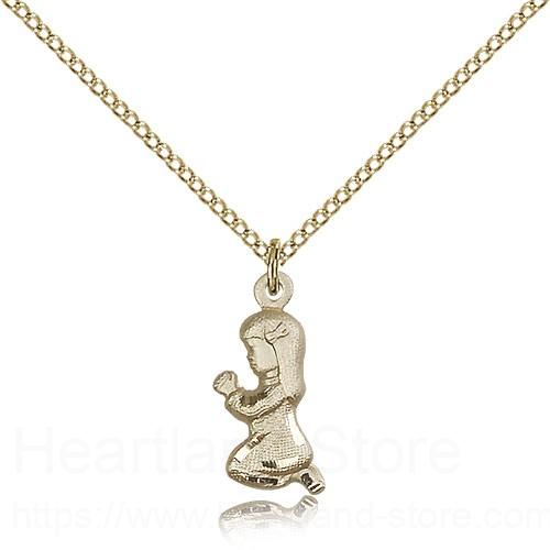 This Praying Girl Medal is paired with an 18" gold filled light curb chain as pictured. All medals are gift boxed in a light blue velvet gift box ready for gift giving.