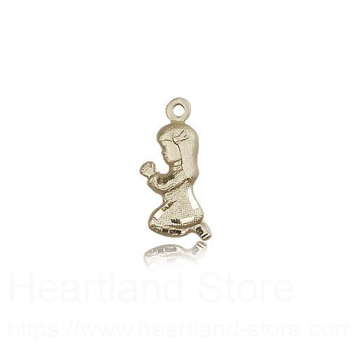 This Praying Girl Medal is made of 14 Karat Gold. The jewelry pendant is sold as pictured and does not come with a chain. All medals are gift boxed in a light blue velvet jewelry box ready for gift giving.