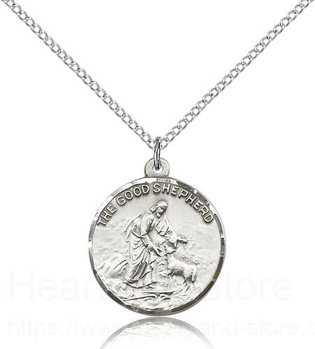 This Good Shepherd Medal is paired with an 18 inch sterling silver lite curb chain as pictured. All medals are gift boxed in a light blue velvet jewelry box ready for gift giving.