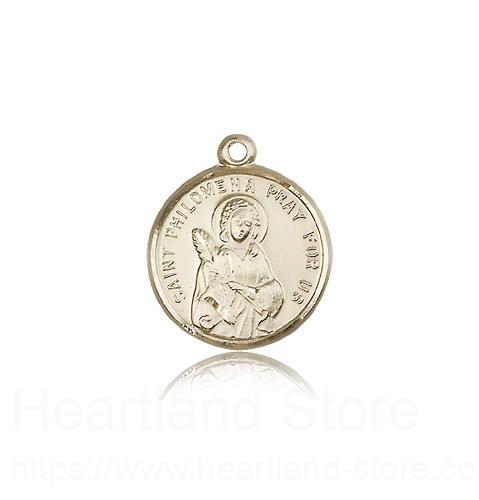 This St. Philomena Medal is made of 14 Karat Gold. The jewelry pendant is sold as pictured and does not come with a chain. All medals are gift boxed in a light blue velvet jewelry box ready for gift giving.