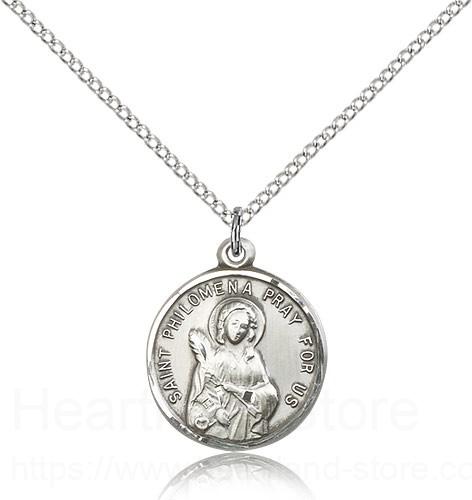 This St. Philomena Medal is paired with an 18 inch sterling silver lite curb chain as pictured. All medals are gift boxed in a light blue velvet jewelry box ready for gift giving.