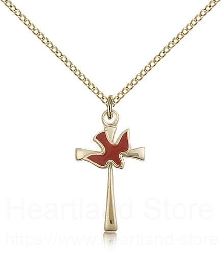 This Cross Holy Spirit Medal is paired with an 18" gold filled light curb chain as pictured. All medals are gift boxed in a light blue velvet gift box ready for gift giving.