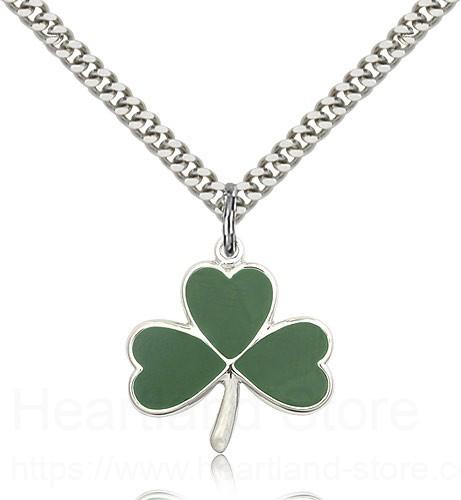 This Shamrock Medal is paired with a 24 inch stainless steel heavy curb chain as pictured. All medals are gift boxed in a light blue velvet jewelry box ready for gift giving.