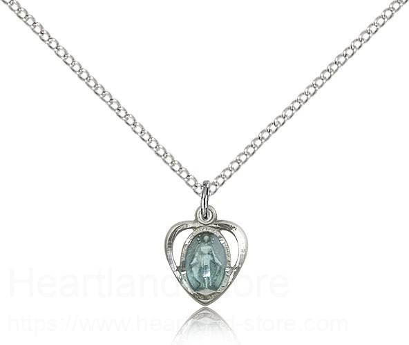 This Miraculous Medal is paired with an 18 inch sterling silver lite curb chain as pictured. All medals are gift boxed in a light blue velvet jewelry box ready for gift giving.