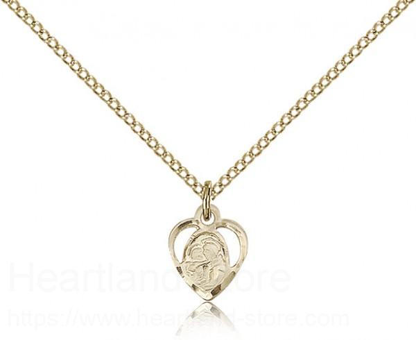 This delightful 14kt Gold Filled Saint Anthony of Padua necklace has a decorative outer heart shape.