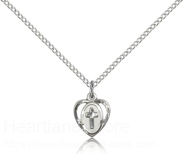 This Heart Cross Pendant is paired with an 18 inch sterling silver lite curb chain as pictured. All medals are gift boxed in a light blue velvet jewelry box ready for gift giving.