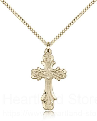 This Cross Pendant is paired with an 18" gold filled light curb chain as pictured. All medals are gift boxed in a light blue velvet gift box ready for gift giving.